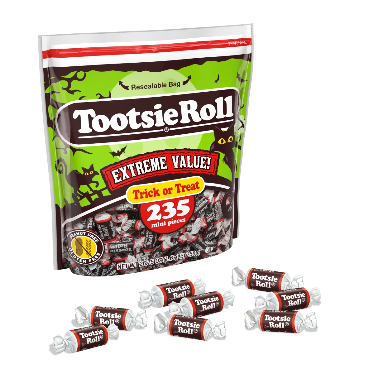 - TOOTSIE ROLL Extreme Value is the perfect Trick or Treat pack for Halloween. Tootsie Rolls combine chocolate taste with soft and chewy texture rolled into every delicious bite. Individually wrapped pieces make these candies perfect for trick-or-treaters, candy dishes, giveaways, parties, boo bags, and snacking.